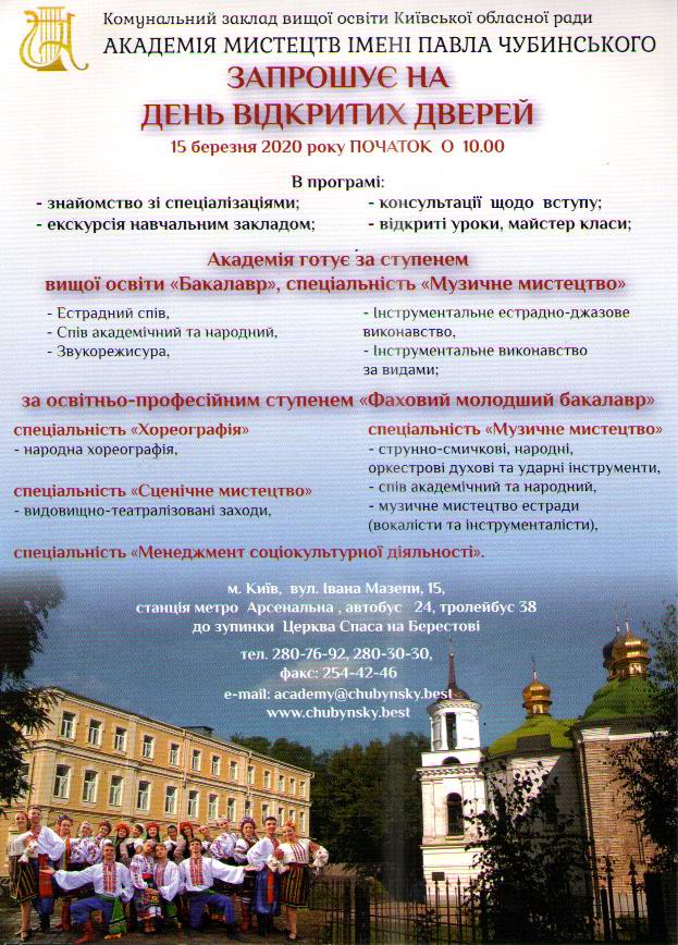 Академії мистецтв імені Павла Чубинського перенесено.