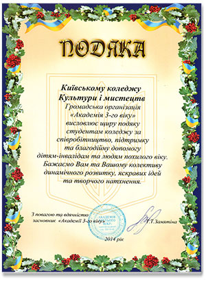 Від імені громадської організації «Академія 3-го віку» - ініціатора цієї акції її головою Т.Т.Замятіною учасникам концерту було вручено подяку.