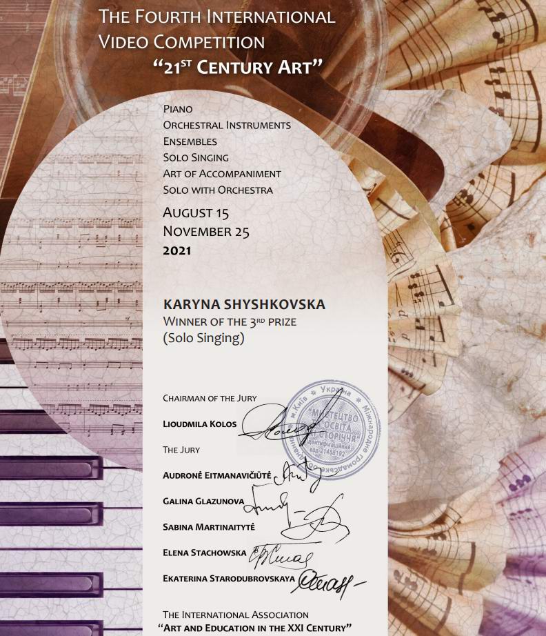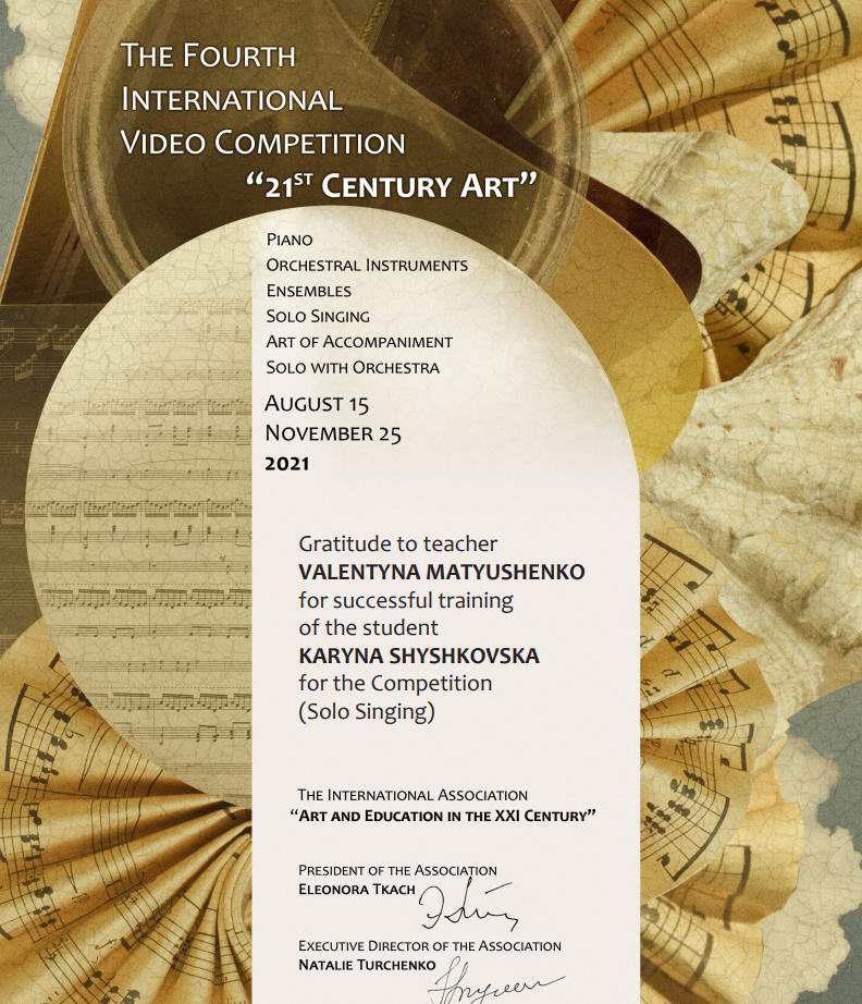 НАТАЛІЮ ВОЛОДИМИРІВНУ СУХОРУКОВУ з чудовими методичними досягненнями: ДАРІЯ ХВОРОСТЯНА СТЕПАН ПЕТРІШИМ-КАНІШЕВСЬКИЙ здобув І премію на двотуровому конкурсі-фестивалі