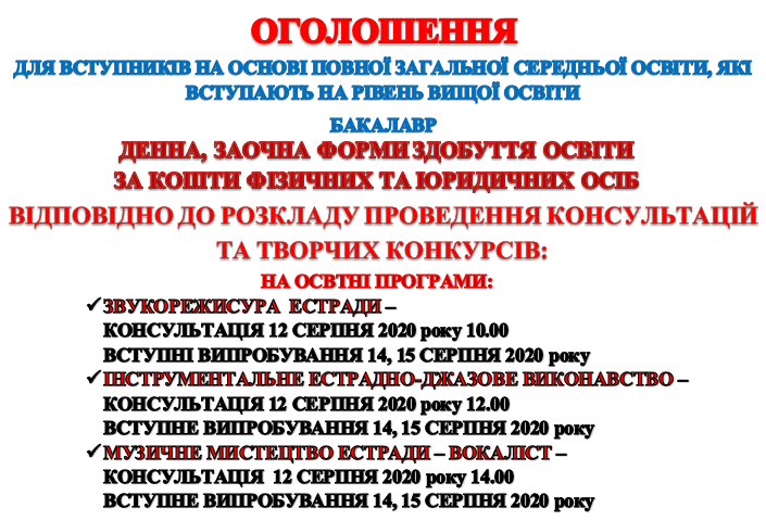 – По-перше, не учні, а студенти. Ми здійснюємо набір абітурієнтів на два рівня освіти. За ступенем вищої освіти «Бакалавр» на спеціальність «Музичне мистецтво», яке включає у себе спеціалізацію – естрадного, академічного, народного співу, інструментального виконавства (у тому числі й естрадно-джазового), а також – звукорежисури.