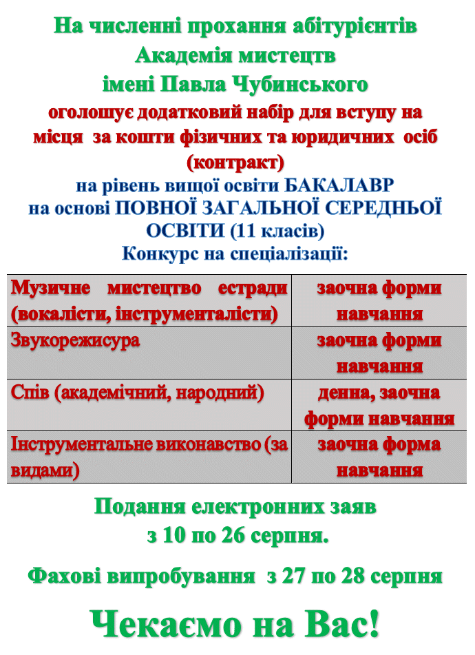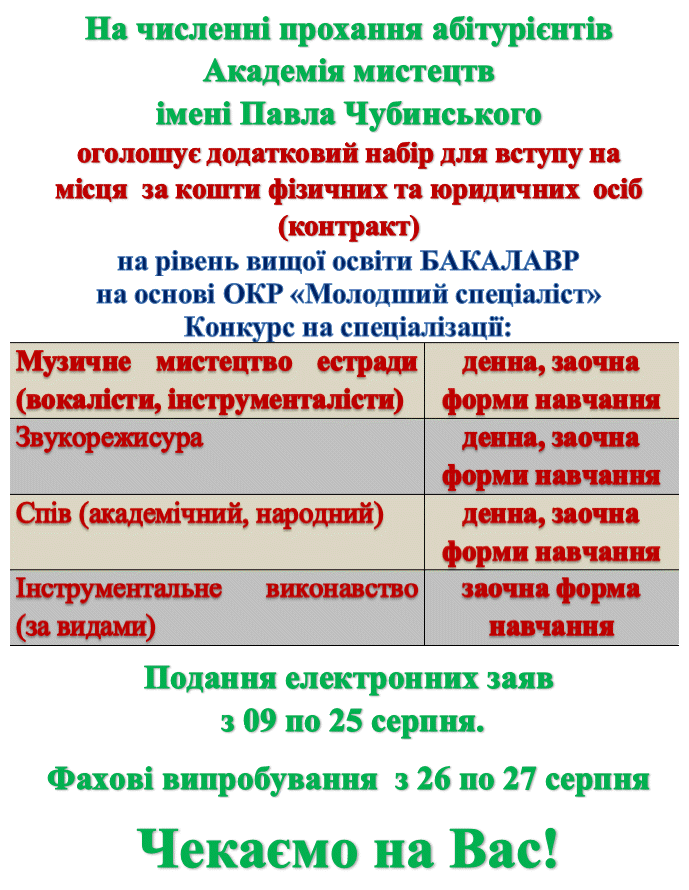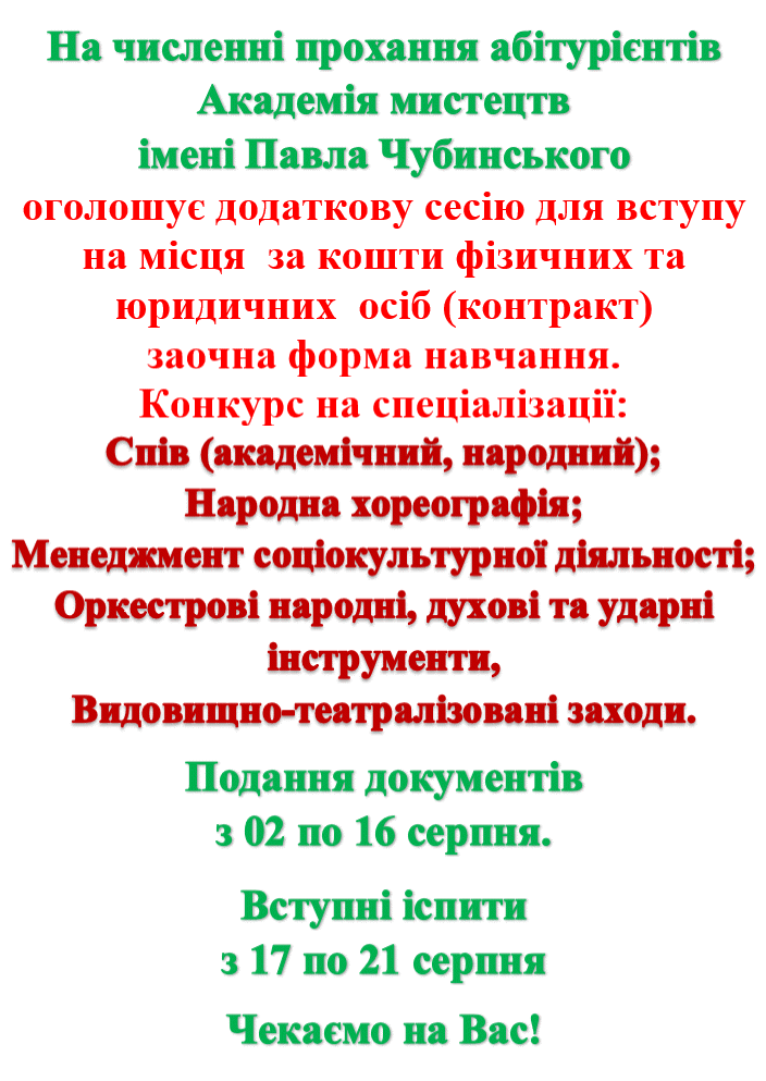 Результати творчого конкурсу (додаткова сесія) для вступу за кошти юридичних, фізичних осіб за рівнем "Фаховий молодший бакалавр"