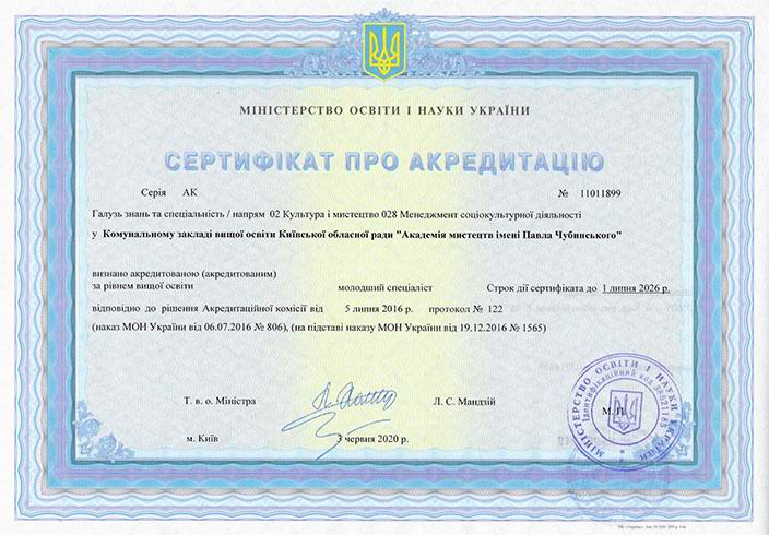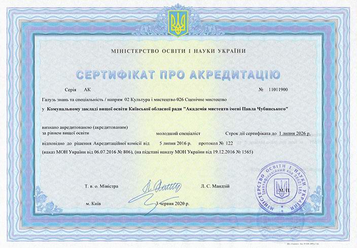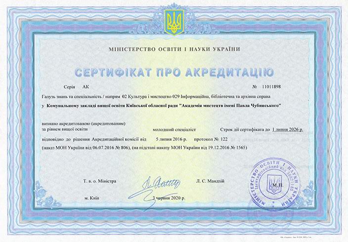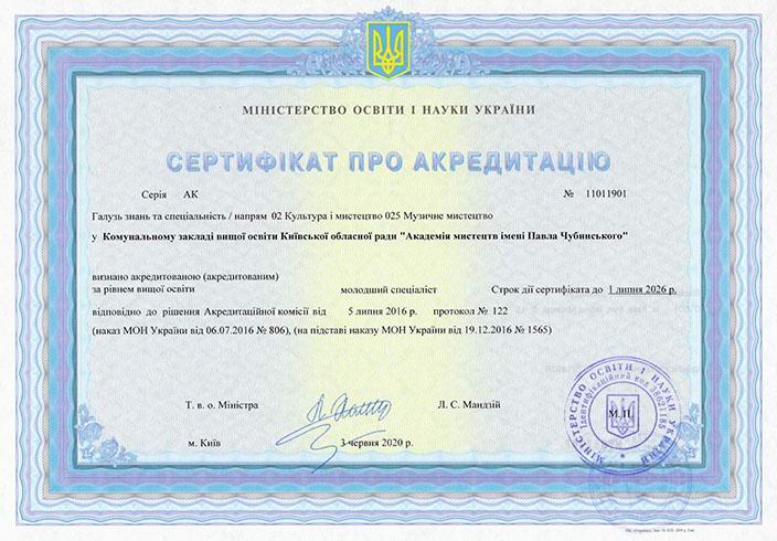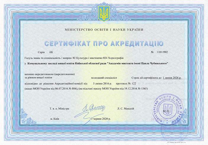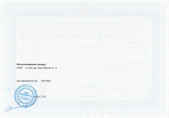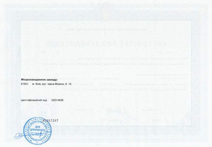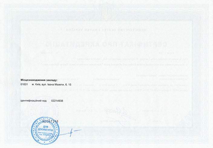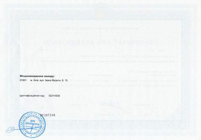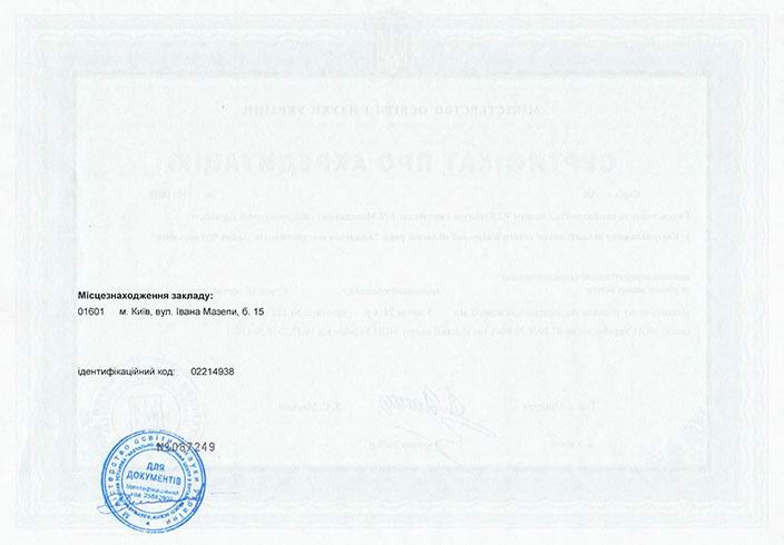 Сертифікат про акредитацію освітньо-професійної програми