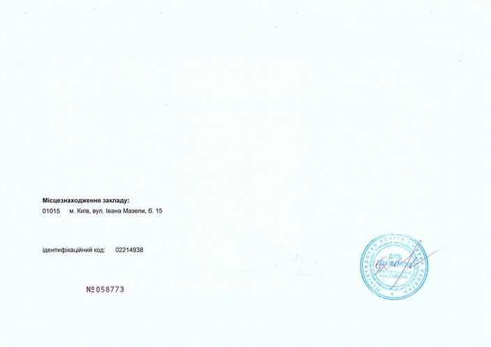 Сертифікат про акредитацію освітньо-професійної програми відповідно до рішення Акредитаційної комісії від 10 липня 2018 р. протокол № 131