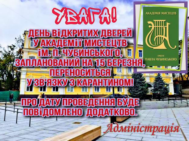 Академії мистецтв імені Павла Чубинського перенесено.