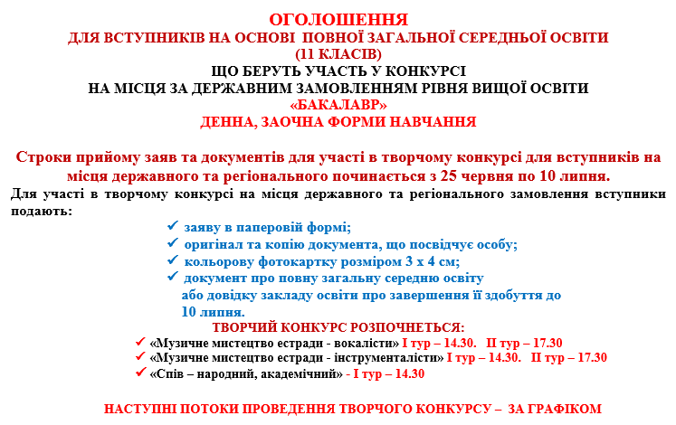 ЕТАПИ ВСТУПУ НА НАВЧАННЯ ДЛЯ ЗДОБУТТЯ СТУПЕНЯ БАКАЛАВРА