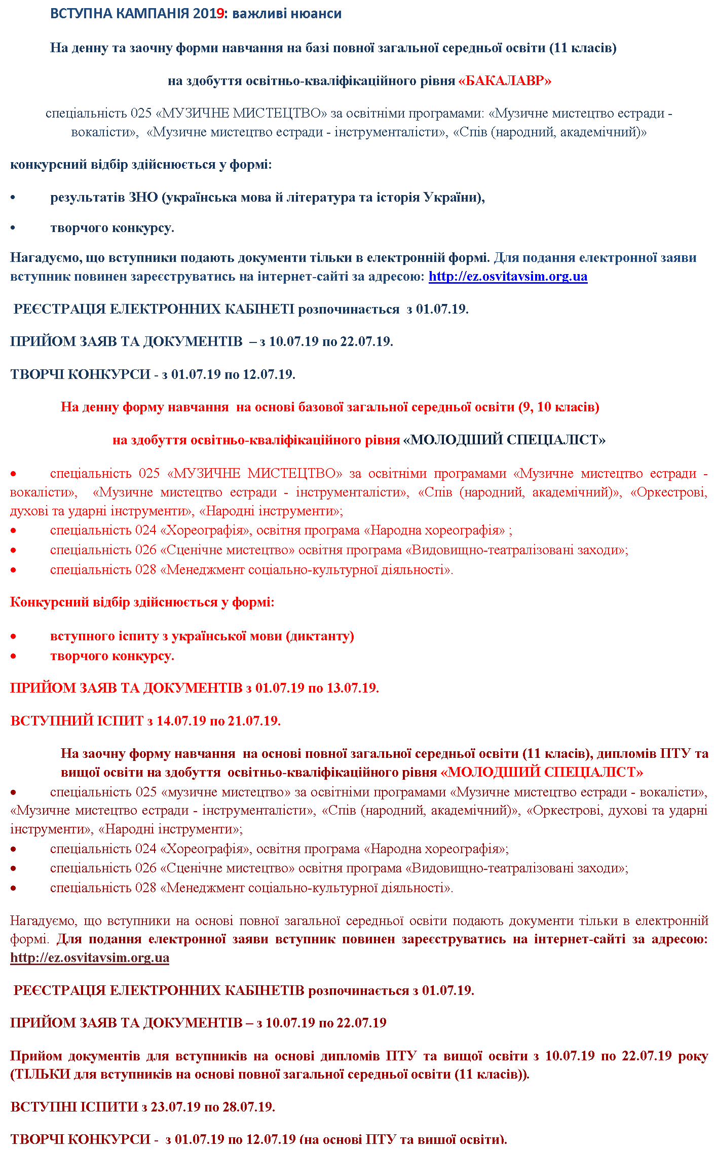 ЕТАПИ ВСТУПНОЇ КАМПАНІЇ 2019