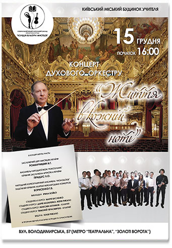 15 грудня ц.р. у Київському міському будинку вчителя звітувала предметно-циклова комісія «Духові інструменти» (голова – С.М. Білоконев), підготувавши концертну програму «Життя у кожній ноті» духового оркестру під керівництвом художнього керівника та головного диригента М.А. Сукненка.