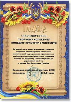 Командир військової частини 2260 полковник В.В. Стецик подякував учасникам концерту за натхненний виступ, вручив подяку та запросив до подальшої співпраці.