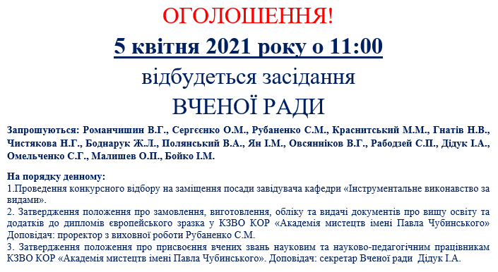 ![ОГОЛОШЕННЯ засідання вченої ради]()