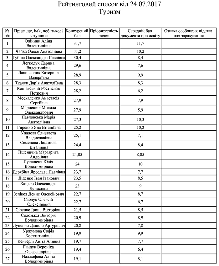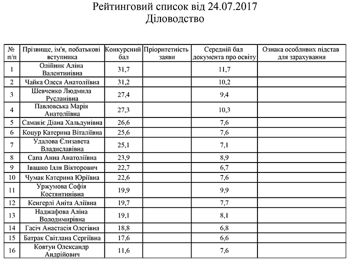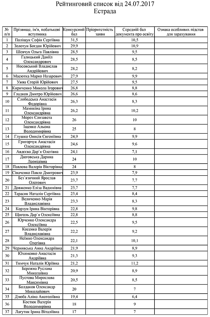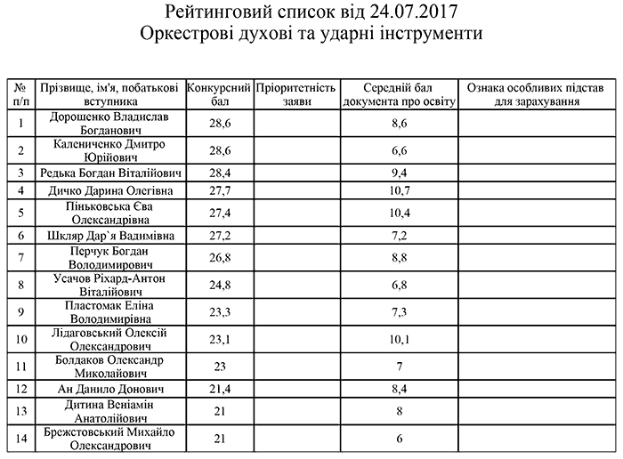 РЕЗУЛЬТАТИ ВСТУПНОГО ЕКЗАМЕНУ