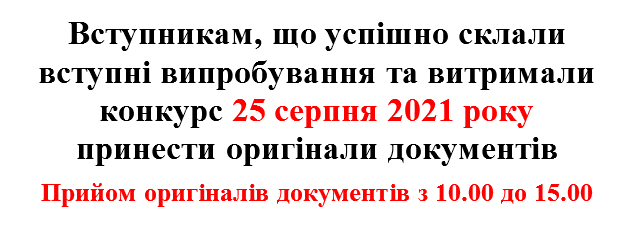 Результати творчого конкурсу (додаткова сесія) для вступу за кошти юридичних, фізичних осіб за рівнем "Фаховий молодший бакалавр"