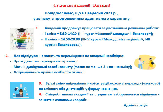 В онлайн форматівідбулося чергове засідання Вченої ради. Ректор академії голова ради Романчишин Василь Григорович оголосив порядок денний засідання та представив оновлений склад ради. Також було обговорено план роботи вченої ради на 2021-2022 навчальний рік. Проректор з навчальної роботи Сергєєнко Ольга Миколаївнапредставилавнутрішню систему забезпечення якості освіти відповідно до рекомендацій Національного агентства із забезпечення якості вищої освіти, етапи та шляхи розбудови внутрішньої системи забезпечення якості освіти в академії (див. презентацію). Питання системи опитувань учасників освітнього процесу як важливої складової забезпечення якості освіти висвітлила вчений секретар Дідук Інна Анатоліївна. Колегіально було узгоджено графік опитувань, види та способи опитувань, використання результатів анкетування. Викладач вищої кваліфікаційної категорії Бойко Ірина Миколаївна розповіла про проведення конкурсного відбору при заміщенні вакантних посад науково-педагогічних працівників на кафедрі. Також було розглянуто заходи для популяризації засад академічної доброчесності в академії, зокрема, проведення 18-22 жовтня тижня академічної доброчесності.