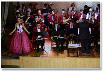 ![Концерт студентського оркестру народної музики „Ватра” у дитячій музичній школі № 35 м. Києва]()