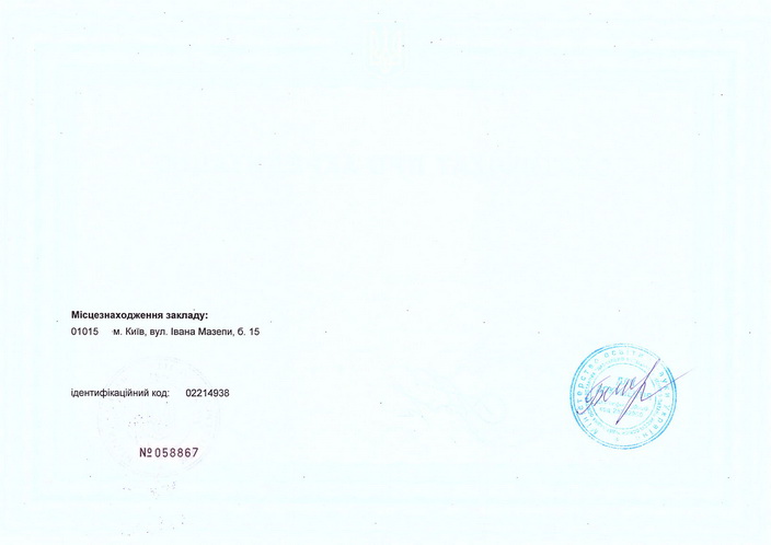 Сертифікат про акредитацію освітньо-професійної програми відповідно до рішення Акредитаційної комісії від 10 липня 2018 р. протокол № 131