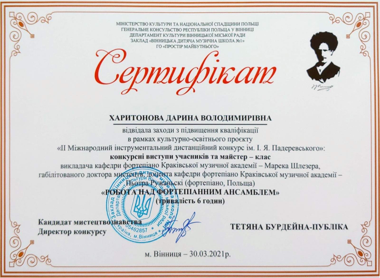 Інструментальне виконавство (за видами) – Конференції, тренінги, семінари, майстер-класи, участь у складі журі